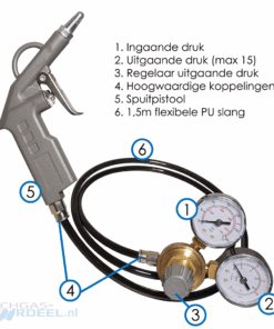 Hai intenzione di usare il tuo serbatoio di gas esilarante in modo fanatico, o forse anche a un evento o una festa in un bar alla spina? Tutto questo è possibile utilizzando un sistema a spruzzo. Questo sistema di irrorazione è dotato di un regolatore di pressione e di un barometro che monitora per te quanta pressione viene applicata al serbatoio e al sistema di irrorazione. Il riempimento è molto facile e anche divertente grazie alla pistola a spruzzo inclusa in questo sistema. La lunghezza del serpente è di circa un metro. Le parti sono intuitive e facili da avvitare e smontare su tutti i serbatoi di protossido di azoto della nostra gamma.
